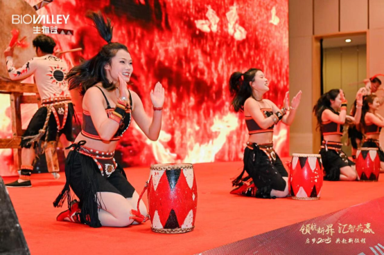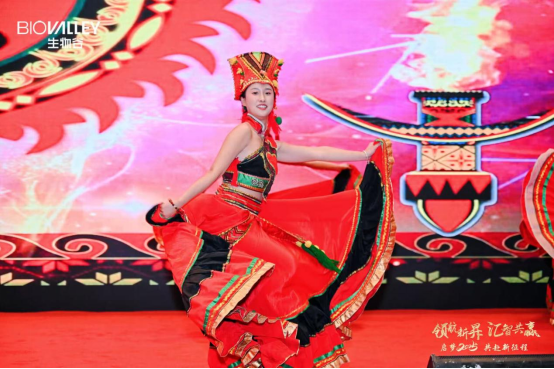 年會之上,舞臺流光溢彩、節(jié)目精彩紛呈。開場以云南特色太陽鼓舞拉開恢弘序幕。舞者身姿矯健,用力量之美點燃現(xiàn)場。一聲聲鼓樂振奮人心,一句句吶喊響徹會場,預示著生物谷藥業(yè)未來征程廣闊浩瀚。