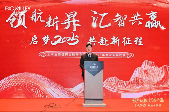 展望2025,不負未來征途。云南生物谷藥業(yè)股份有限公司董事長林弘威先生為盛典致辭。他代表公司董事會,向所有奮斗在一線的同仁表示深切問候,并向支持公司的各級政府、各界領導表示崇高的敬意和誠摯的新春祝福。致辭中,他講述了生物谷藥業(yè)2025年整體戰(zhàn)略規(guī)劃,強調(diào)生產(chǎn)安全與藥品質(zhì)量是企業(yè)的發(fā)展基石,生物谷必將嚴格遵守生產(chǎn)流程管理制度,加強質(zhì)量管理體系建設,推行綠色低碳理念,全鏈條培育和發(fā)展中藥材產(chǎn)業(yè),做高質(zhì)量的民族藥、中醫(yī)藥,踐行生物谷藥業(yè)可持續(xù)發(fā)展之路。